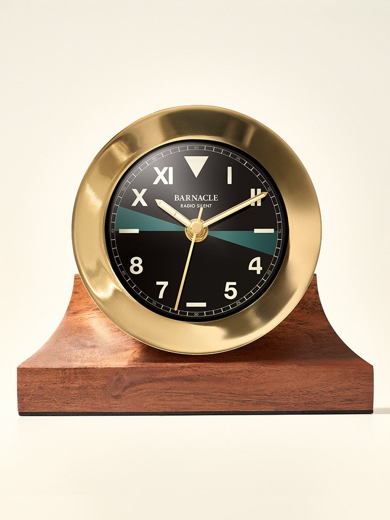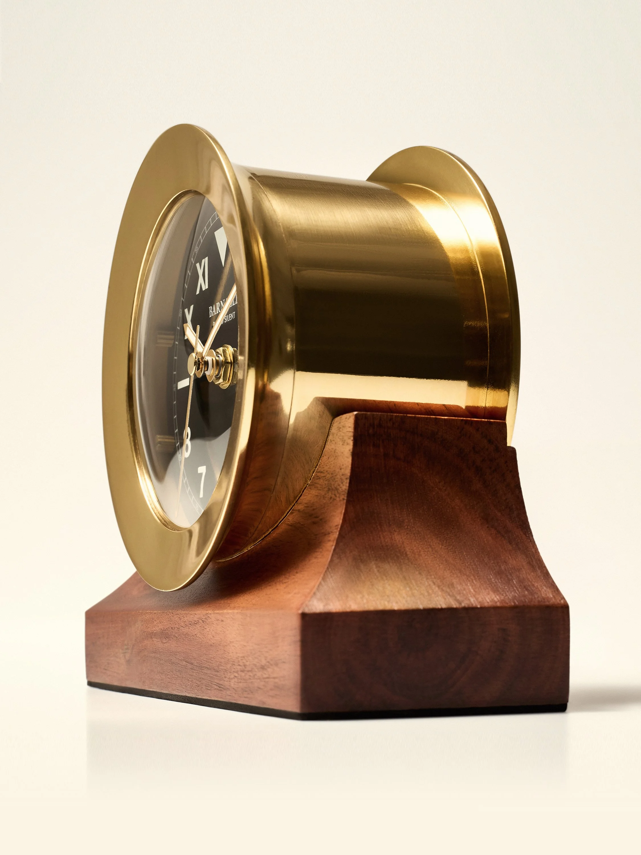 • Hand-crafted forged brass case with a patent-pending caseback design that simplifies time adjustment for wall-mounted Barnacle clocks.